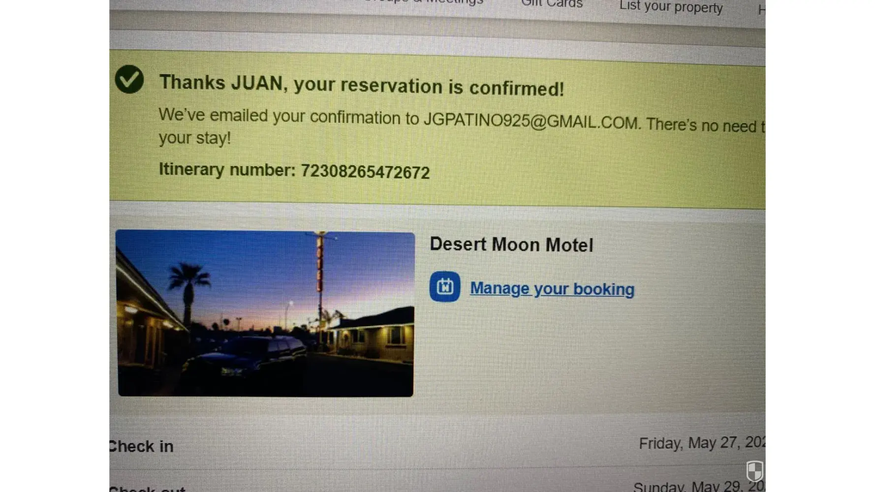 TODAY ,MY BOOKING RESERVATION CONFIRMATION [protected] REFERS [15/06/2022.