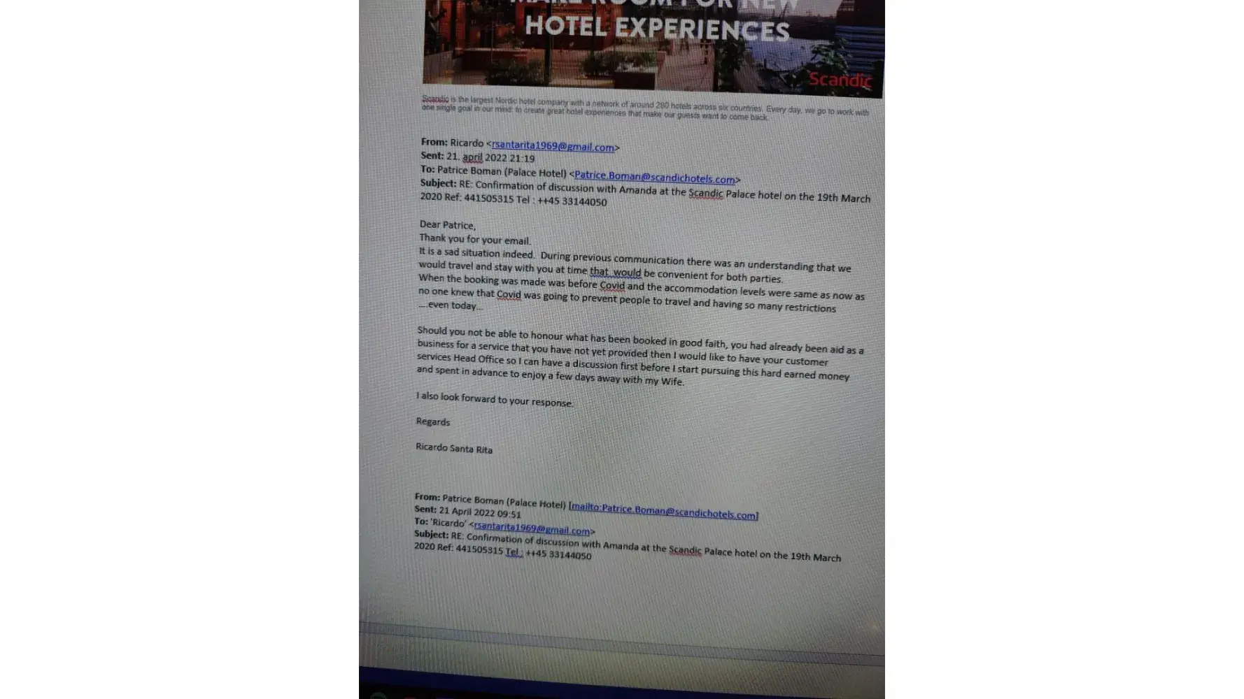 We booked 4 nights with Scandic Hotel in Copenhagen and then Pandemic / Covid started so we could not travel as Denmark before Britain went into a lockdown. These restrictions were in place... when these rstrictions relaxed, we wanted to book but the restrictions kept getting tighter again... not fault of my own.. we all have our own lives and plans...my sister in law passed away with cancer a couple months ago...so this has put also a strain when we were available to spend the well deserved break in Copenhagen... When contacting the Hotel, they have now turned around that long time have passed and they no longer honour the booking..?