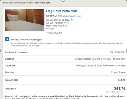 Note I have booked a room at Flag Hotel Porto maia. When I got there, the hotel was CLOSED.