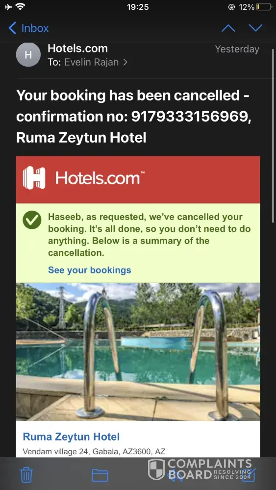 I have already sent many e-mails to Hotels.com about this issue and they have not solved the problem.
