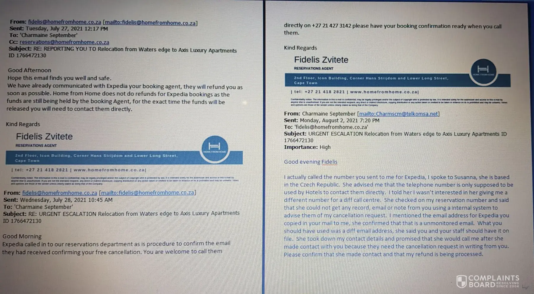 booked 5/03/21 thru Hotels.com. booking # [protected]. 6/11/21 Home from Home emailed they overbooked had to relocate me. If I refused, I had to cancel booking, they'd instrct Hotels.com to issue full refnd. I called Hotels.com 4 times, reps promised to contact establishment to request written cancellation. Home from Home & Hotels.com service is pathetic. I want my refund.