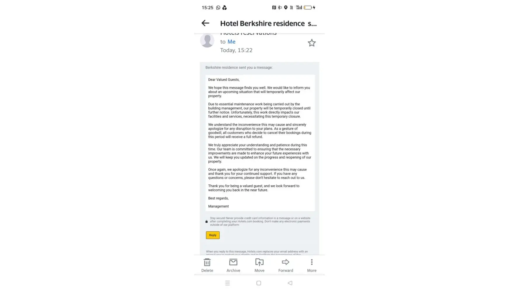 On 8 Oct 2023, I decided to call up Hotels.com to ask if the issue was resolved. I spent half an hour on the phone and eventually, I was told that the booking should have been canceled and I should not see any charge on my bank card.