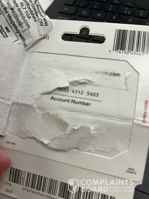 Please see attached image to show where the pin number is missing. Because of the way the gift card is made (out of paper).