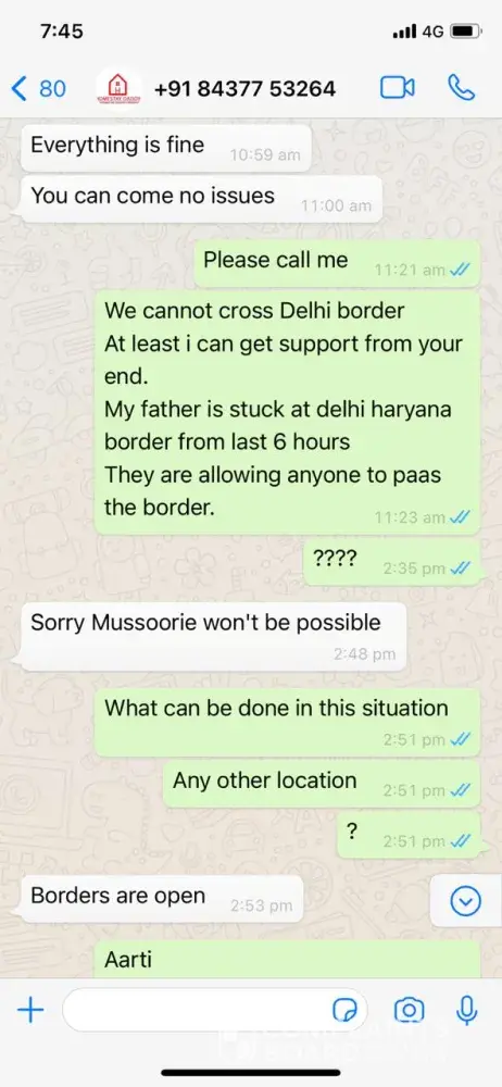 We booked our stay for 8 people and 2 kids at their Casa Vista Shimla property. One day before there was Farmers agitation in Punjab leading to the sealing of borders. Because we had kids traveling with us (one :3 years old and another 4 months old), we requested the team to shift our dates to some other week. The team who did not pick our calls saying she is busy at a wedding and we had to literally beg them to at least chat with us on Whatsapp and confirm if they can either cancel the booking or shift the dates or change the property to some other place. They said they can shift it only to next week and there will be no refund. My brother's family unfortunately got tested COVID positive two days later. We straight away called them for 2 days and requested them to cancel our booking since we were only 6 cousins left now and w head paid for 10. Also asked them to reduce the price accordingly but got no response. Tried whatsapping them to at least be a little understanding of the situation wherein we had 4 teenagers now and 2 adults. We had to somehow manage our travel on 5th December. Once we reached Shimla, the rooms were not cleaned properly. There was no water supply and we were told to use water judiciously. the furniture was dirty. The kitchen did not even had basic sugar or tea or salt. The staff who was in touch with us over whatsapp chatting (did not pick our calls and said she's in a wedding for over one week by now and did not give us her owner's number so we could discuss). We had also asked them for their help for arranging a cook to which she said there will be a cook/caretaker who takes 200 Rs or so per meal and will cook for you but he clearly refused and said he's working as household maid somewhere and doesn't have time. We tried getting in touch with team but in vain because they were not available on calls and continuously tried shunning the situation. Moreover, we see in the news that Shimla would remain closed after 8 AM-8 PM and on Sundays. When we discussed this with the team she said there is nothing like that. We told her clearly that we are arriving on Sat and will leave on Monday because we are employed and have our office. If we are coming for holiday, we might as well enjoy at least but because of no support given we told them we are disappointed with their services. Looking at that message, instead of calling us as their customers or supporting this, Aarti msgd us and said your booking is cancelled and we will not refund your money as well. Do whatever you want. I'm highly disappointed with wasting money on this stay during this trip. It was not just a waste of money but fraud on their part.
