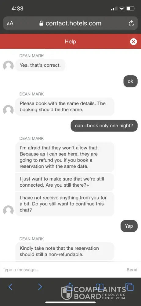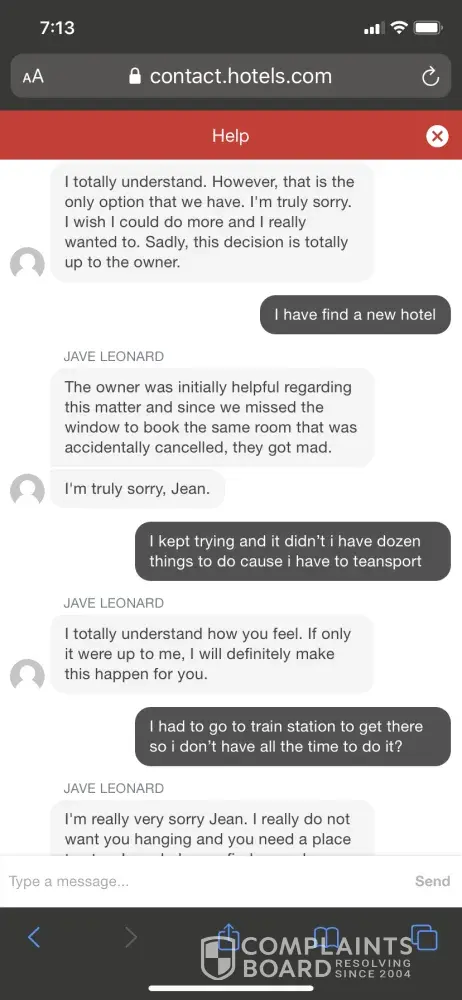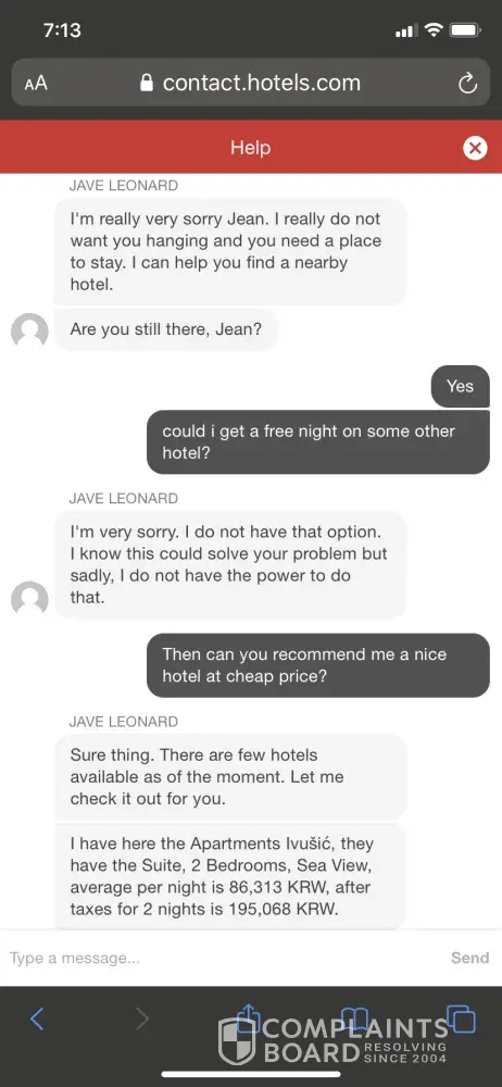 zero customer service from hotels.com over their errors