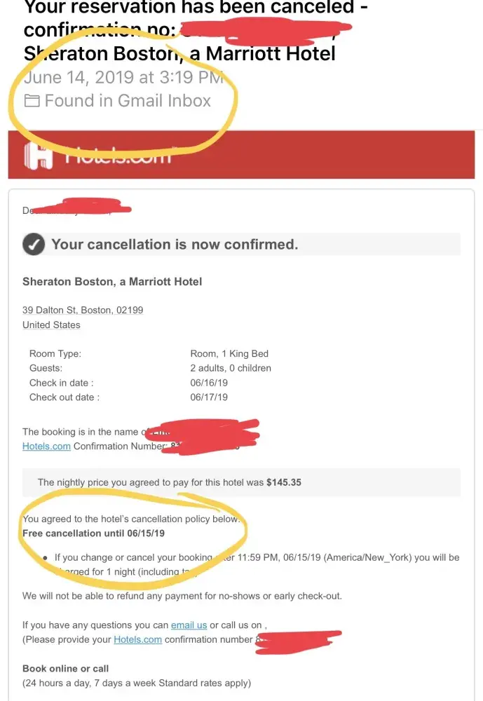 hotel stay cancelled