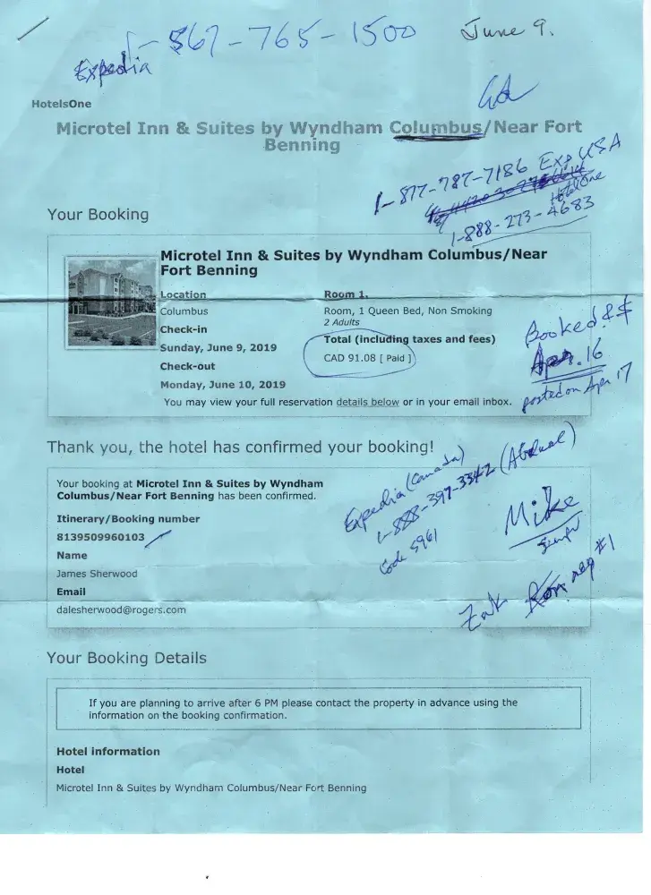 The online and paid booking was for a one night stay in Columbus, Ohio with booking # [protected]. When we arrived in Columbus Ohio the hotel could not be found and with help from locals, the Microtel destination was determined to be in Columbus Georgia. On the booking confirmation sheets, there were serious information omissions - namely, there was no reference to the State or a tel number of the property [so that a cancellation could be communicated]. I have talked to numerous associated agents to seek contact information - which you see on the attached jpegs of those confirmation sheets. The recent response through the HotelsOne agents was their policy for prepaid reservations is 'No Refund'. This issue is 100% worthy of a refund, as the Georgian property was paid but no service was provided and HotelsOne is totally at fault with its incomplete confirmation which created considerable frustration for two retired and loyal Microtel customers. Please do the right thing and return my Cdn $91.08 ASAP.