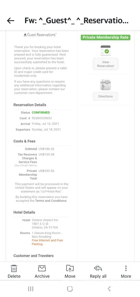 Made reservations to stay at hotel on a military base, found out 2 months before reservation date due to Covid restrictions I would not be able to stay at hotel on base. I tried to cancel my reservation but it was impossible to get a human on the telephone…. Ended up paying over 300$ in cancellation fees… they make their website look like it's the actual hotel website…. I will always call the actual hotel for now on to make a reservation