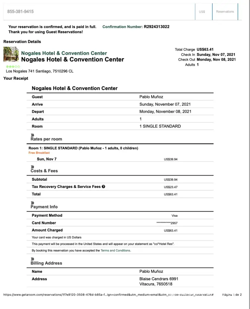 I booked at Nogales Hotel & Convention Center in Providencia, Santiago, Chile. When I arrived to the Hotel, I noticed that the hotel was closed for 2 years now.