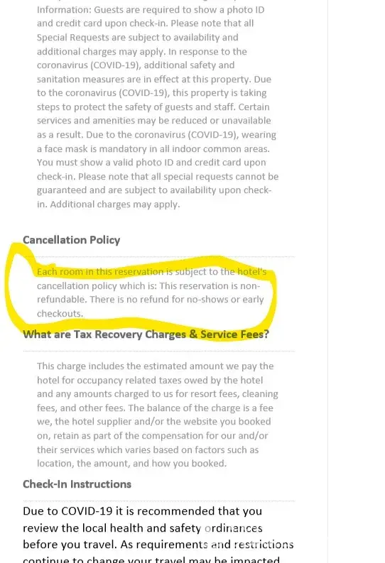 When we attempted to cancel, they said it's not refundable, even though that was never mentioned, similar to the aforementioned fees. They claim to follow the hotel policy on cancellation.