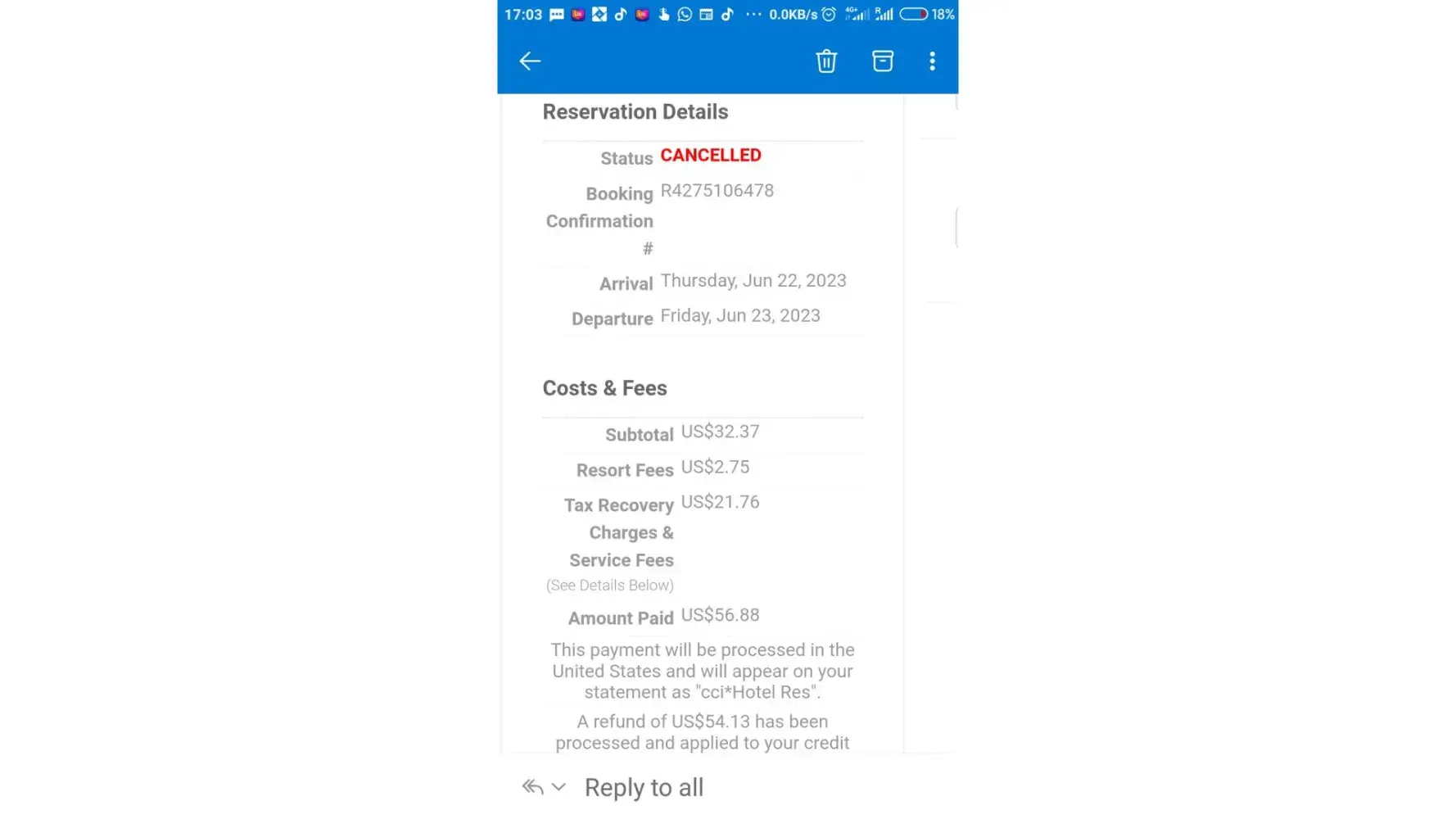 I made a reservation through this site yesterday June 19 2023 and was charged a rate far above the advertised rate. I immediately cancelled the reservation within the hour but till now I did not get any refund.