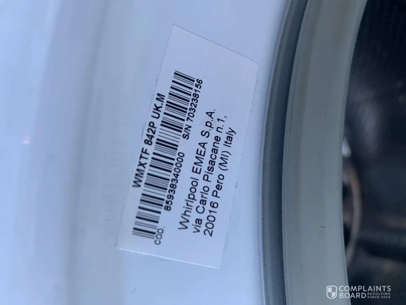 I brought a Hotpoint washing machine 2 years ago from very WMXTF 842P whirlpool it was smoking burning on Saturday 09/11/2019 I had just come back from shopping when I noticed the smell when check the door had opened whilst still on cycle should never had happened I am left now with no washing machine, I'm so glad I came home when I did the house could of burnt down. Concerned and upset.