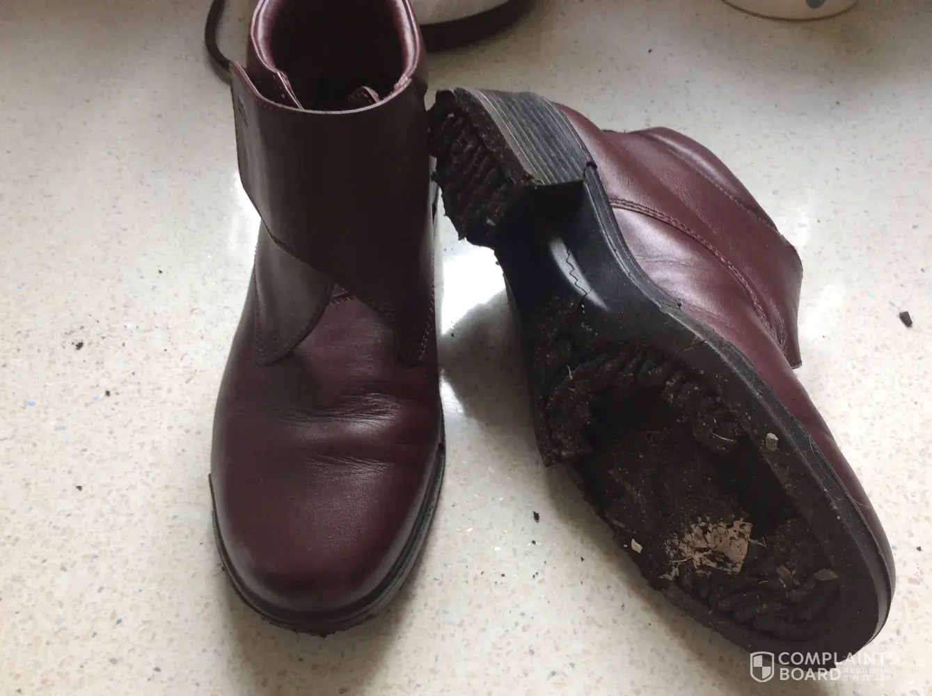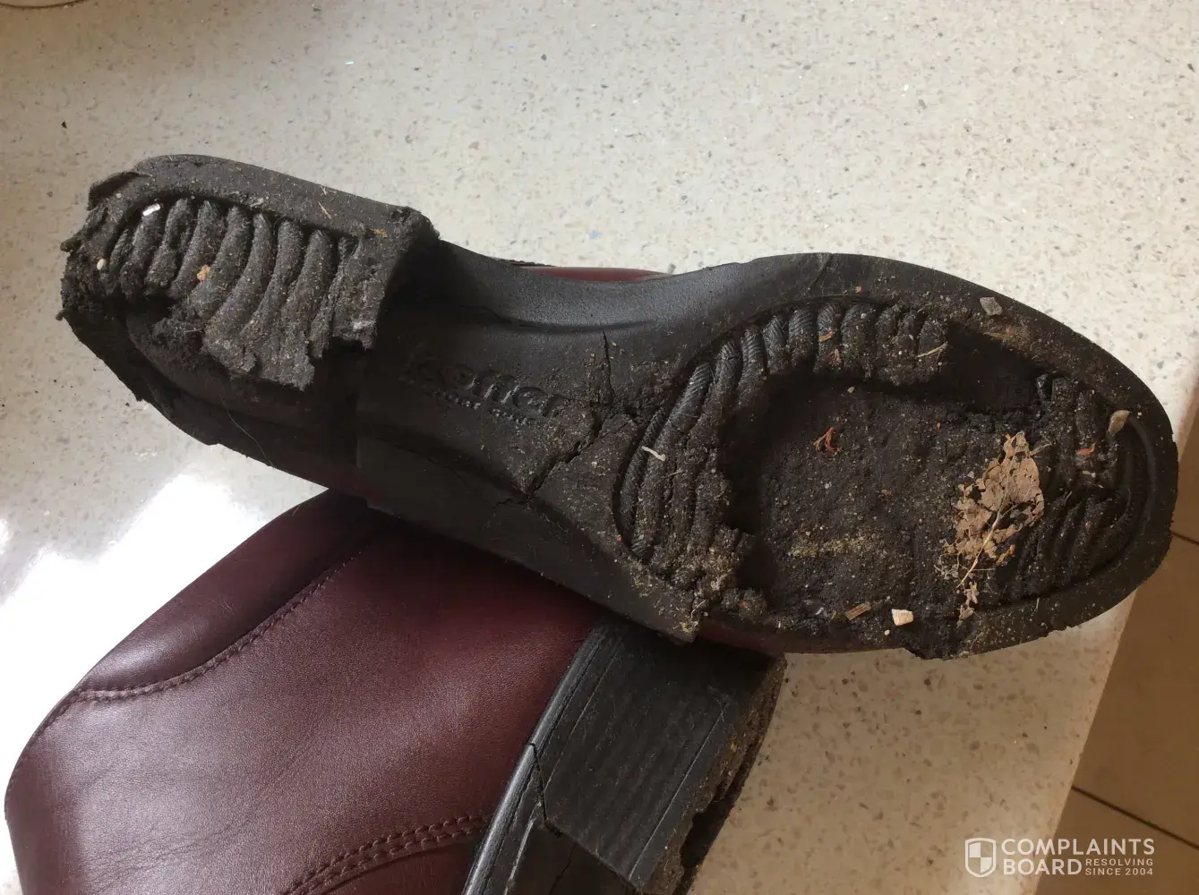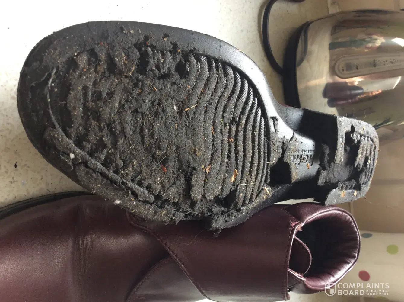 I was given my Hotter leather ankle boots as a gift . The weather changed and I barely wore them. I stored them carefully. Today as the weather was colder I brought them out to wear. After only an hour's wear I was completely shocked to discover the rubbery soles were quite literally disintegrating as I walked ( on completely normal surfaces) l enclose photos. The leather uppers are in perfect condition.