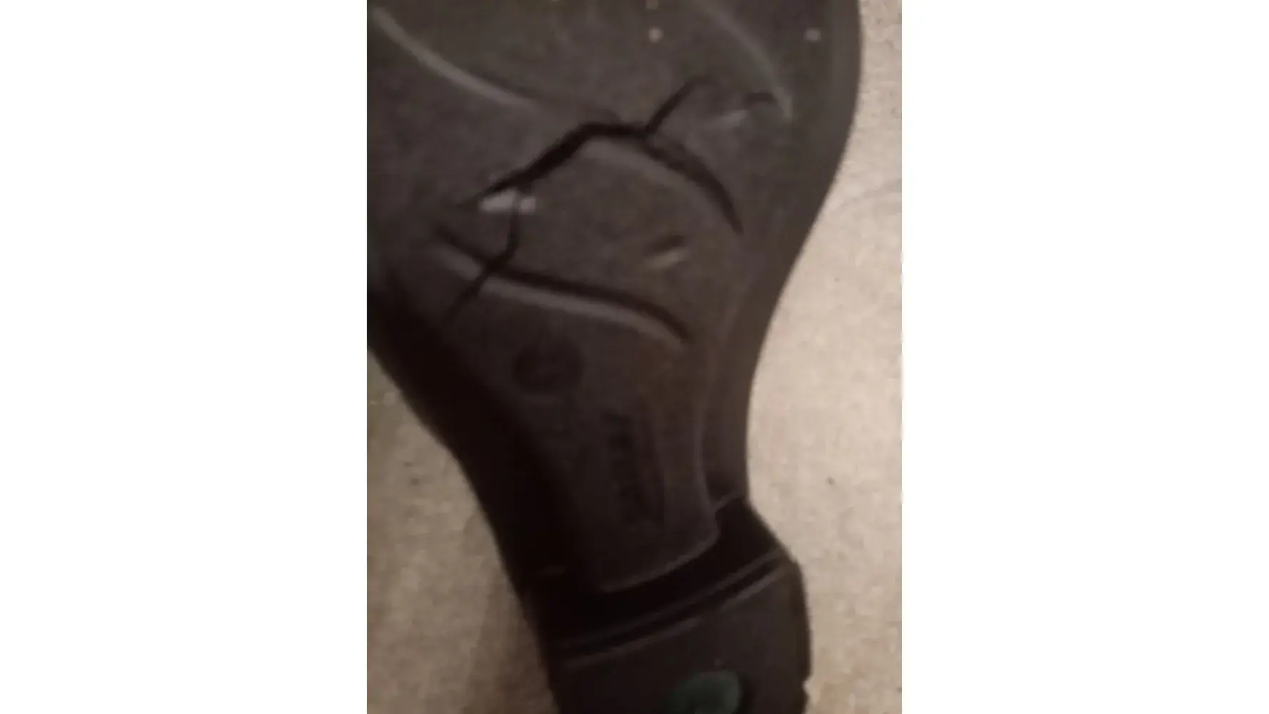 At the weekend my husband put on a new pair of hotter shoes to go out for a meal with friends. The shoes were bought a number of years ago and stored in a wardrobe. During and following a short walk from the car to the restaurant, the sole of the shoe disintegrated leaving debris on the road and in the restaurant. The whole event was very embarrassing. The shoes could not be worn to return to the car.
