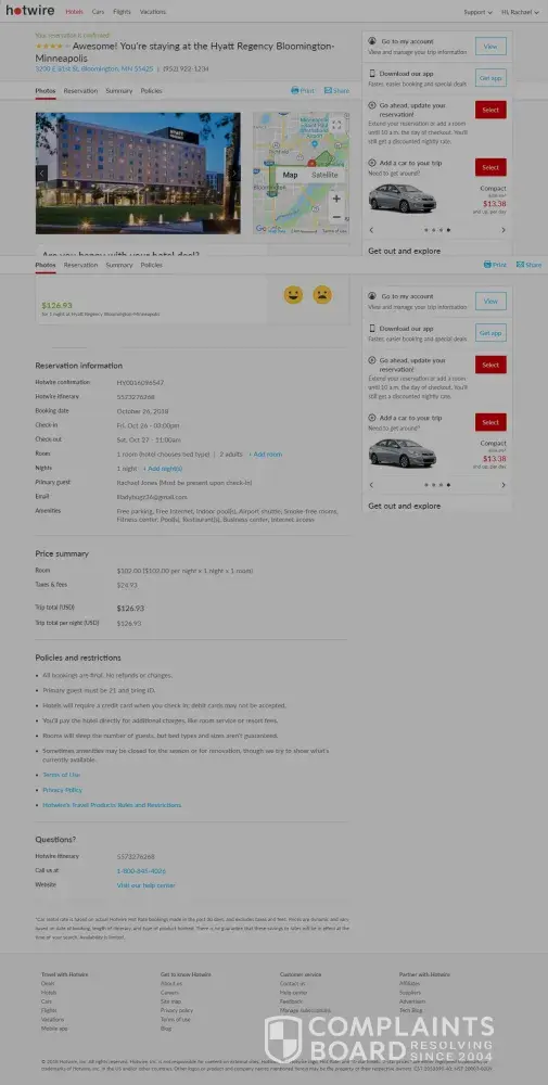 On September 18 I made a reservation with Hotwire [protected]) for a car rental in
