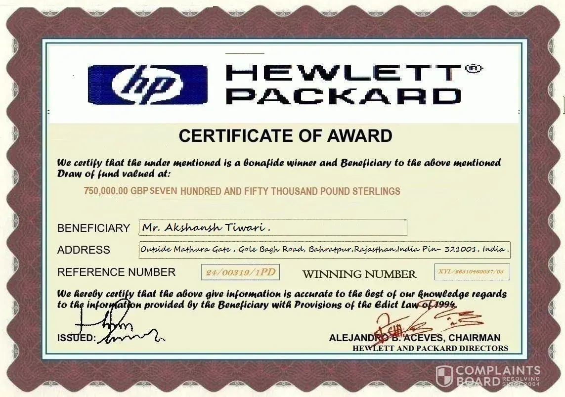Your e-mail has won you 750, 000.00GBP and two hp laptops windows seven