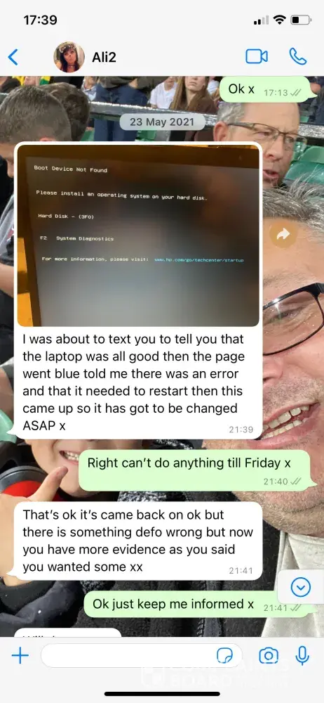 i purchased a laptop in May 2021 and within days of buying there was issues, i got a blue screen black screen etc and i had purchased it on my friends Argos account and he was away i don't have family or transport and am disabled so i couldn't return it. I thought as i had warranty i would be able to get this resolved, i then had more health problems as i had a massive heart attack and was diagnosed with ms so with that going on i forgot about the laptop issues Then when i remembered i tried getting this resolved. I contacted the support, and it took so long to reply i thought I'd leave it for a another so i did and it took at least 10 mins between each reply then i tried again on 8 dec then again on 12 dec and then i finally managed to get to speak to someone and they have arranged for it to be repaired. I have sent the proof in from when it was bought and from when the faults started occurring and it was less than a week from buying it, that said even with the evidence i was told hp wouldn't be able to give me a new replacement only repair it, the laptop was £550 and i tried so many times to get it sorted and now it's the 7 month and it's just getting worse and worse and I'm afraid i am disgusted that is not acceptable cos even if i had managed to get it back to the shop it would have gone back to the manufacturer. I had used HP in my working life but after being told that they are only going to repair a laptop that was faulty from day one is disgusting. So now i have to have it taken and be without a laptop for 10 days while they fix a faulty laptop and not replacing it so that i am not in put me in further detriment. I paid a lot of money for this, and they can definitely afford to replace it. Which is what i want. i have added the evidence of what occurs and not only that when it changes to windows 11 its much worse, I reverted it back to windows 10 and it was even worse. I BELIEVE I DESERVE A REPLACEMENT NOT A REPAIR ON A PURCHASED FAULTY MACHINE AS THAT WILL JUST HAVE FURTHER ISSUES DOWN THE LINE AND TO PROTECT MYSELF ID HAVE TO PAY A WARRANTY AND BE EVEN MORE OUT OF POCKET i have added vids pictures and the bottom of laptop for the laptop details. All these issues started when bought and are getting worse every day now