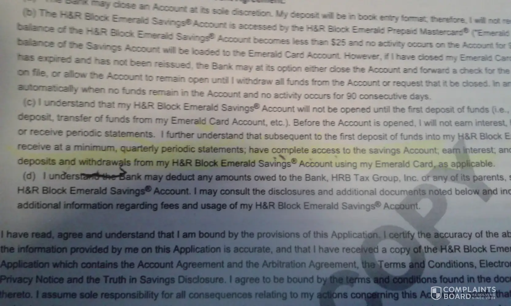 Read full complaintH&R Block Emerald card