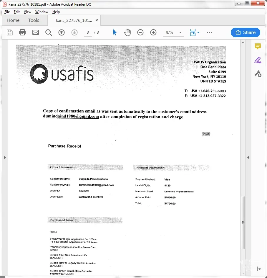 2) USAFIS* GREENCARDSER USD500.00(Rs82, 461.26) 23 AUGUST 2018