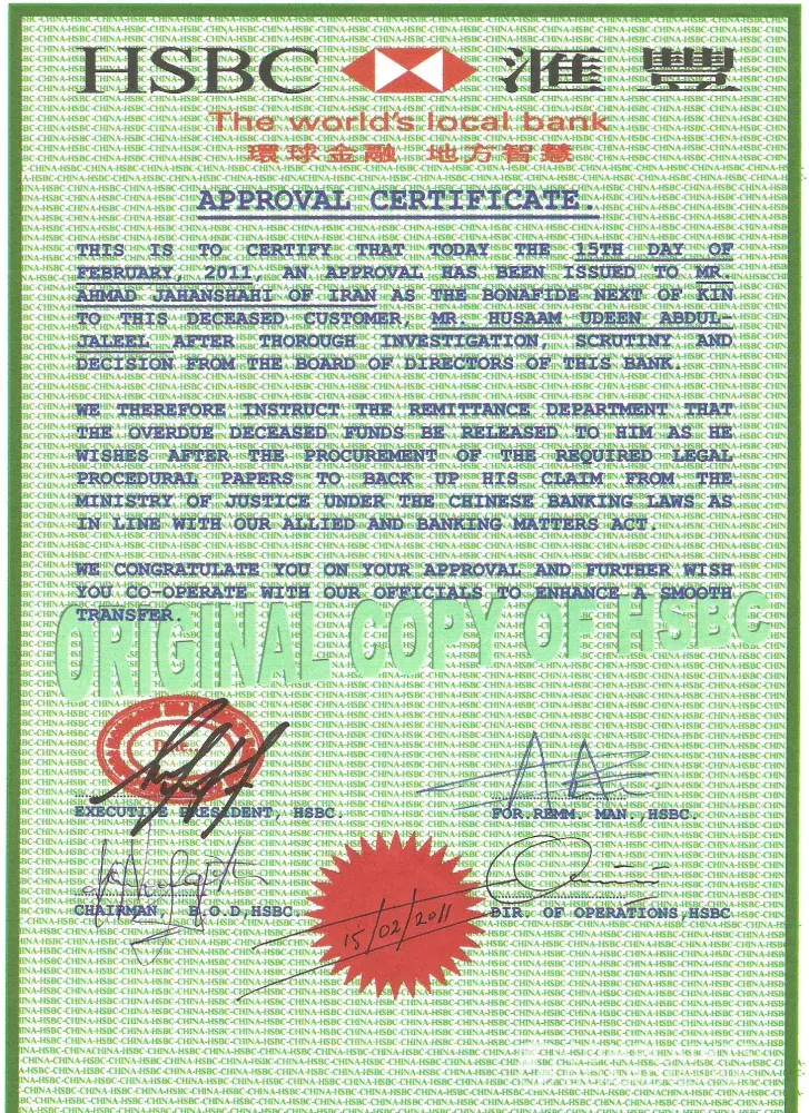 hsbcمعرÙÛŒ کرده بود به عنوان اینکه ارثیه ای در ان بانک به من به ارث رسیده توسط وکلای شرکت نوبل در شانگهای چین مبلغ 10000دلار کلاهبرداری کردند وبرای ازاد شدن ارثیه مبلغ دیگری Ù…ÛŒ خواستند Ú©Ù‡ Ùهمیدم کلاهبرداری است.من ادرس ایمیل واطلاعات ØØ³Ø§Ø¨ÛŒ را Ú©Ù‡ پول واریز کردم را زمیمه Ù…ÛŒ کنم.