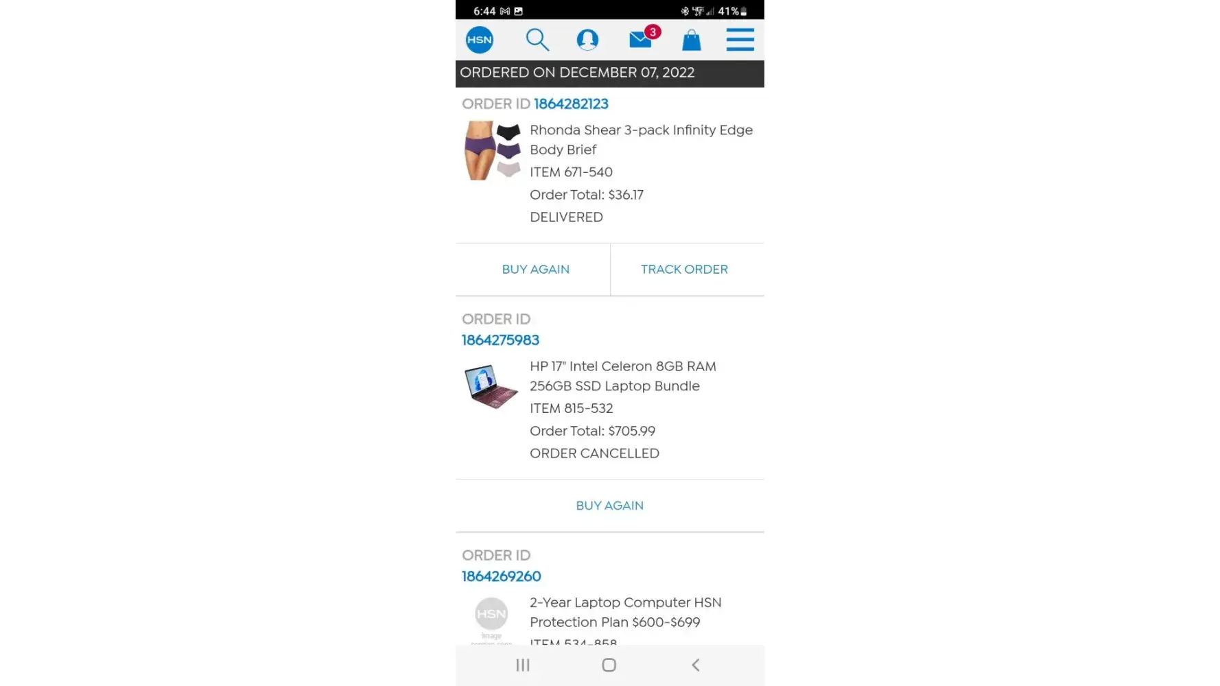 I have tried to order the same item HP laptop 5 different times 4 different ways and for some reason it keeps getting canceled. The 1st time it was said that they could not verify who I was. I got intouch with the Fraud department and provided the information to prove who I am. Waited 3days for my HSN credit card to post the credit back. Tried to order again, this time it was canceled saying I wasn't eligible for flex pay but mind you they gave an HSN credit card. The third time I tried to order and paid for it straight out, the order got canceled stating that I need to verify myself. I called the Fraud department again to proved who I was again (3rd time) Now mind you I ordered a cheap underwear set and there was no problem with me receiving that order nor did I have to prove who I was. I tried ordering the Laptop a 4th time and it was canceled a 4th time for the stating cannot prove my address is legit. If you can't prove the address provided is legit, how in the world did I receive the cheap underwear set no problem. It's the same address and I am the same person without having to prove who I am and receive those with no problem. Needless to say, I will not be ordering from HSN again. I don't want this to happen to anyone else.