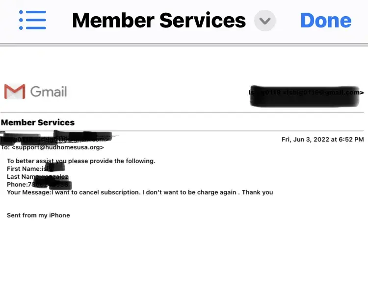 On June 15th, 2022. Hud home USA charged my account $45.90. I have no reciltion of contacting the company. I just want my money back and this cancelled.