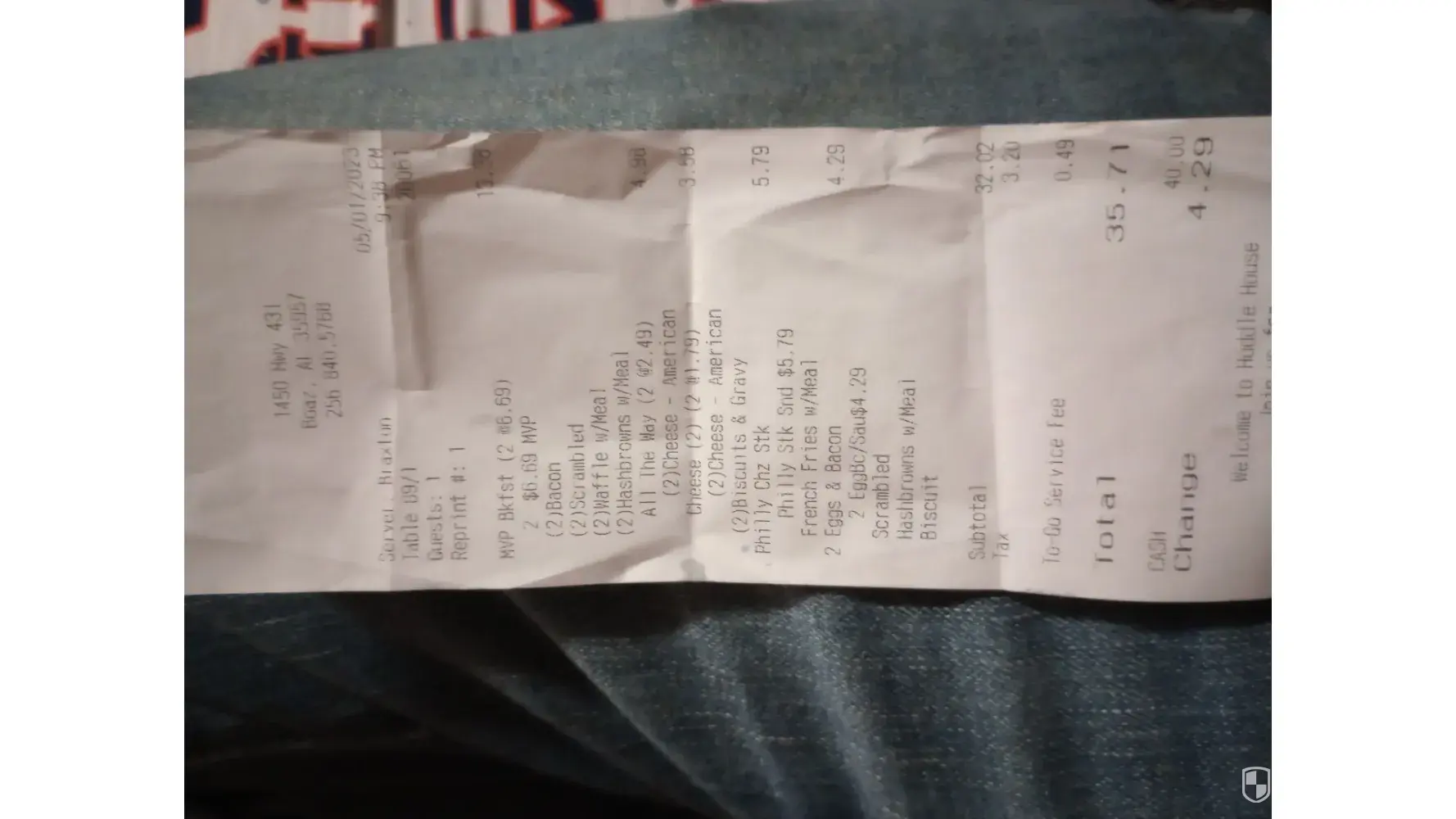 I ordered over the phone four meals I ordered two mvp breakfasts we didn't get one of the waffles and the bacon was burned and melted the plates completely also both and the hasbrowns were so hard that they we unedible, and we didn't even receive one of the meals the two eggs and bacon. The philly sandwich the bread was burned we couldn't even eat it. I have the receipt and the food was cold. Also the gravy was spilled out of the plates and all over everything. We received no utensils nor any syrup.