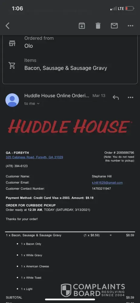 Read full complaintHorrible pickup/dine in