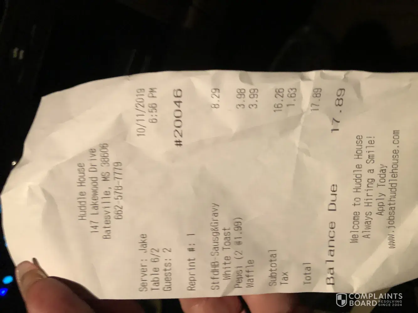 Read full complaintservice on a to go order