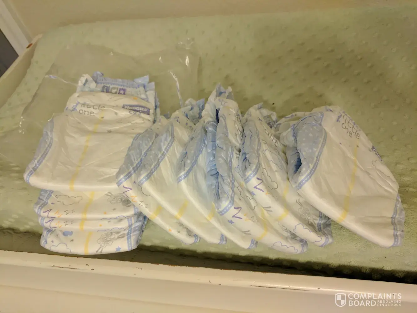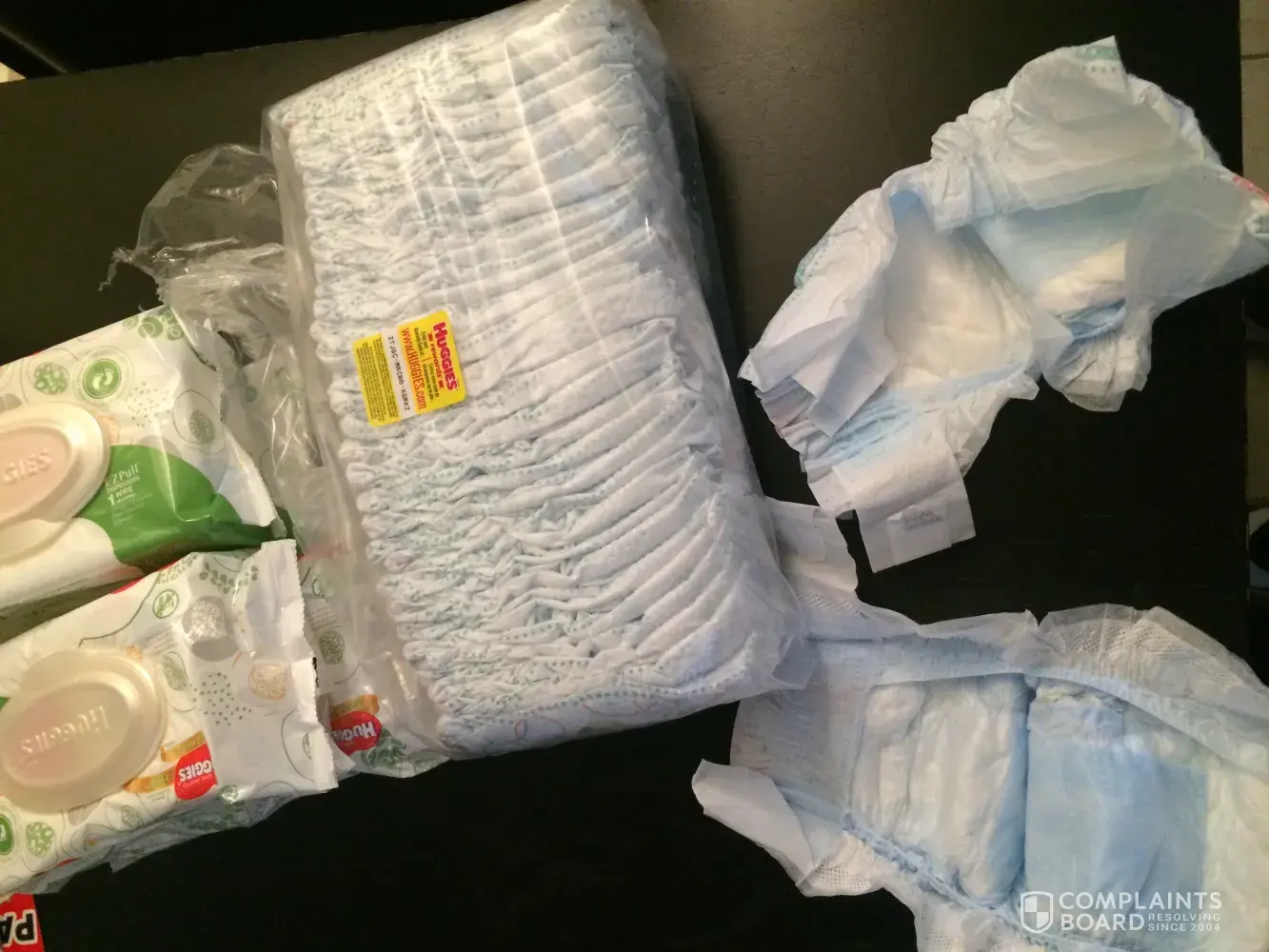 I purchased a size 1 box of Huggies pampers. They would not stay attached I also purchased a box of wipes which contained 600+ wipes in the box...they broke my new born baby out soooooo bad she had to stay overnight at leboneur children's medical hospital...I had to go back to the old school ways and use soap water and towel because she couldn't stand for anything to touch where I wiped her at after using those wipes...I have 4 children and I've been purchasing ONLY huggies brand for all of my children and this is my first time experiencing these situations...