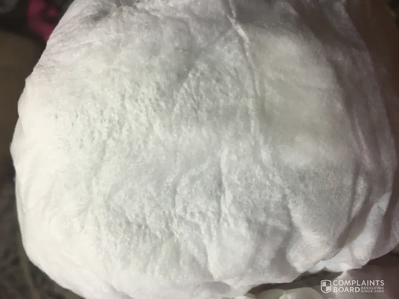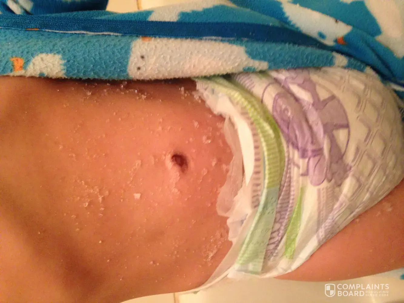 This is the third time my son's Huggies Overnites diaper has exploded overnight all over him. The inside gel that is supposed to absorb urine was in pieces stuck all over his belly, back and legs. After a third time I decided to write this complaint. There is nothing like being awake for 2 minutes and then having to give your child a bath while he screams the whole time because it isn't routine. The photo is of the exploded Higgies Overnite underneath a Luvs backwards. I do that to avoid my son taking off his diaper. But the exploded pieces are from the Huggies Overnite.