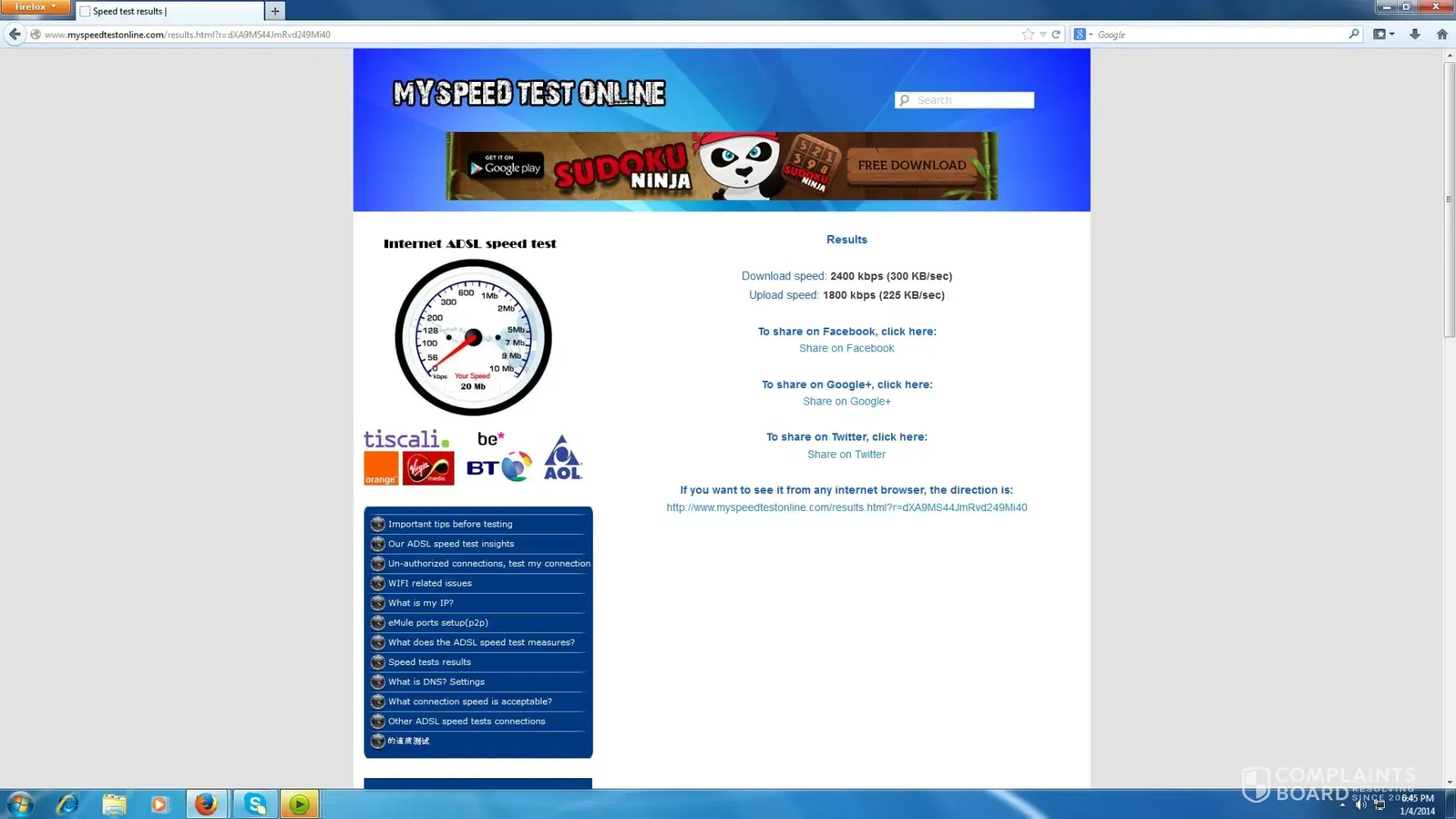 0.14 MBPS for download and 0.45 for upload. What a difference when the seller said is the same speed as Fios!