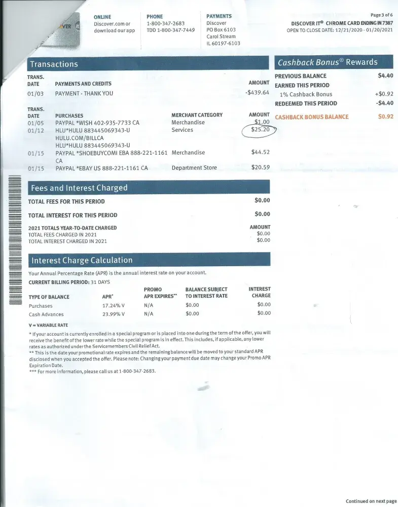 subscribers responsibility to monitor account. Total amount I had to eat, was $24.40.