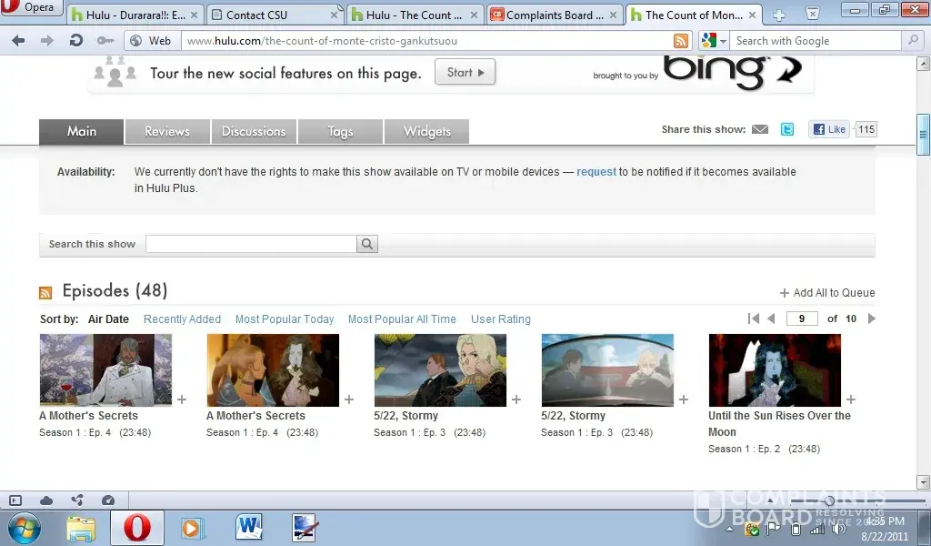I do really love hulu, and I love the strides that they have taken with anime distribution companies in order to make anime more available to a wider audience. One thing that does bug me about their practices is how they go about separating dubbed anime and anime only with subtitles. There is no checkbox in the search options that I have found, and when on a show's page, the dubbed and subbed versions are no longer segregated. When a viewer is looking for a specific version, it is extremely aggravating to have to sit through four ad blocks just because the viewer clicked on the incorrect version of the episode to start with. A mere wrong click isn't the issue--it's that I have to get through the opening ad, the opening credits, the second ad, and then hear two seconds of audio to realize my issue. It would be great if I could just take half a second to read "Subtitled version, " or even head off the issue by searching only for "Dubbed." The attached picture shows an episodes list, with two unlabeled versions of every single episode.
