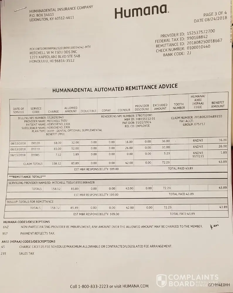 On behalf of Dr. Mitchell Tseu(tax id [protected])