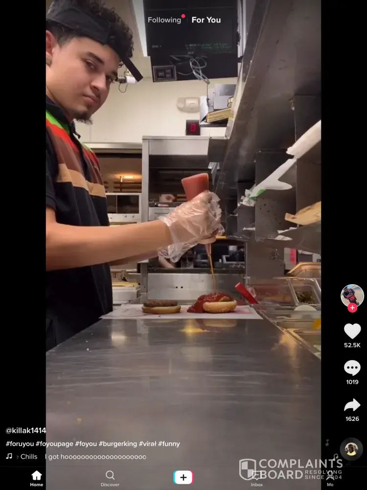 I was on tiktok and on the for you page I saw a guy from Hungry Jacks pouring too much sauce the video and photo is down below and I don't know why he is doing this but it is really stupid and immature to do. This is why my family's Hungry Jacks or Burger King food always takes long because of this. This incident needs to be dealt with and, there needs to be a boss on duty to keep an eye on immature workers. This problem|Incident needs to be dealt with because people are waiting for their food and they don't need that much sauce on their burger/hotdog/wrap this is ridiculous and this worker needs to be suspended for 1 month for this because it is not on and people do not need to wait for their food because of a stupid immature person, who is being stupid with food and playing with it just for a tiktok. I don't care if this is just a joke it is stupid and immature and this needs to be dealt with as soon as possible
