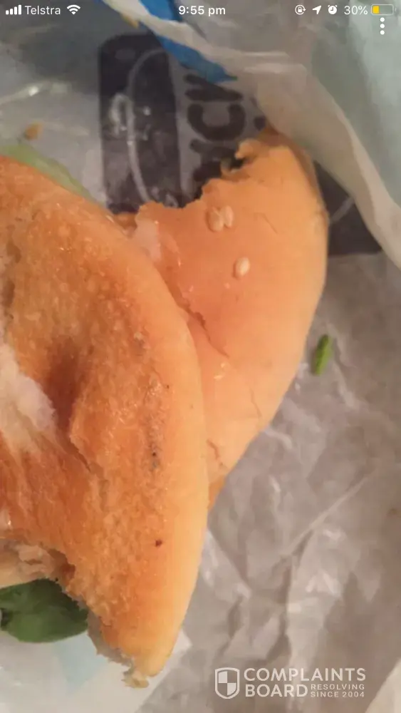 I was eating a chicken burger until I realised there was mould on the bottom of it. I felt so sick when I realised and I demand a compensation for it! Extremely poor of them to have that in the kitchen honestly hope I don't fall ill! I will be extremely mad if I don't get my money back for this because it is so unfair if I got served and my money taken for mouldy food that's really poor. The least that can happen is I get my money back thank you.