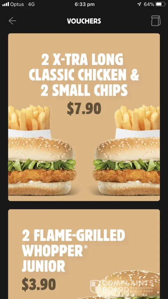 We had a voucher offering two extra long chicken burgers and small fries for $7.90