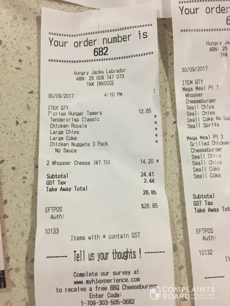 Disgusted with what I considered to be almost a bad taste joke, we called the store to complaint seven (7) times, each time ringing until the calls timed out except for the last call to which someone at the store picked up the handset to avoid the ringing but left the unit on the bench as we could hear what was going on at the store but no one talked to us. In summary, the whole experience was deplorable and truly tarnish the Company's slogan of "the burgers are better at Hungry Jack's".