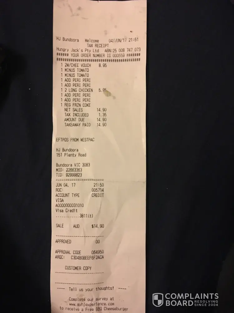 I'm coming to pacific werribee shopping centre, melbournehungry jacks from last 6 months regularly and there service is not good, sometimes they forget to put patties in burger and sometimes they charge twice for a meal.