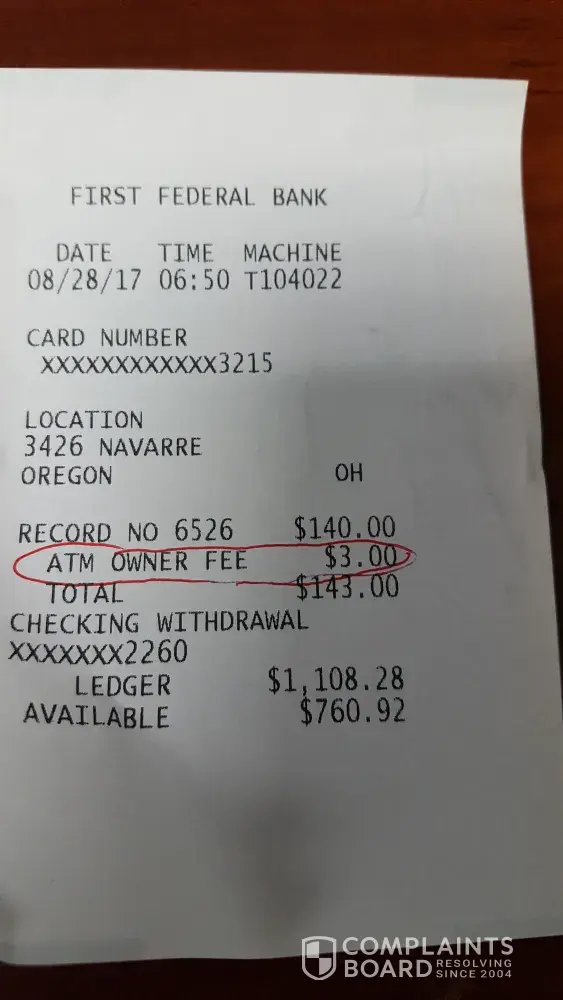 I used another ATM and was charged $6.00 in fees. $3.00 for using the ATM and $3.00 for the receipt. What a joke. No wonder people HATE Huntington. I have other bank accounts and they dont charge me to use other ATM's.