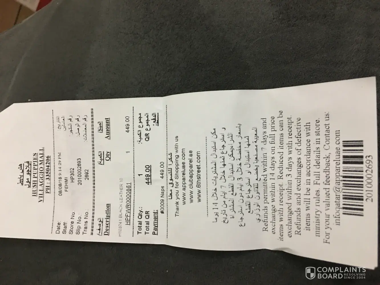 complaint of hushpuppies shoes