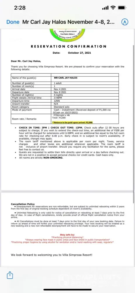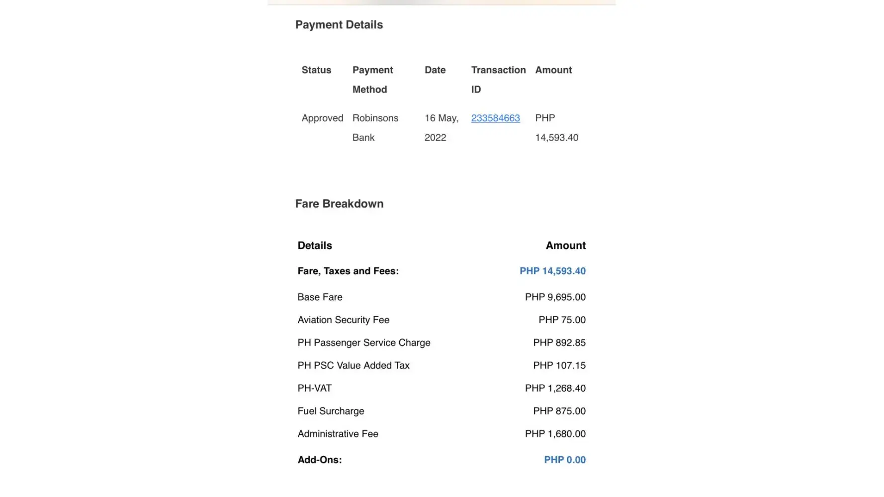 I am writing to formally request your urgent action to refund the payment made under booking reference number [protected] amounting to PHP57, 081.44/-