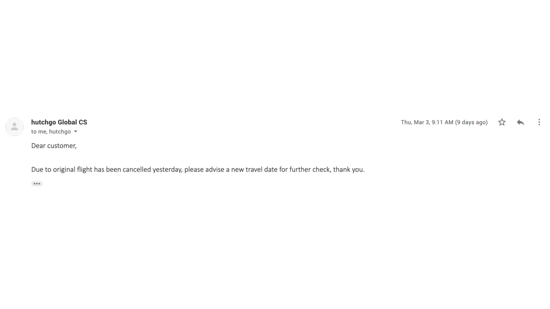 5) On the 3rd March, I've replied to them with the updated date which is 15th March to travel as they requested. But over 2 week, no reply, no answer or anything even with my follow-up email.