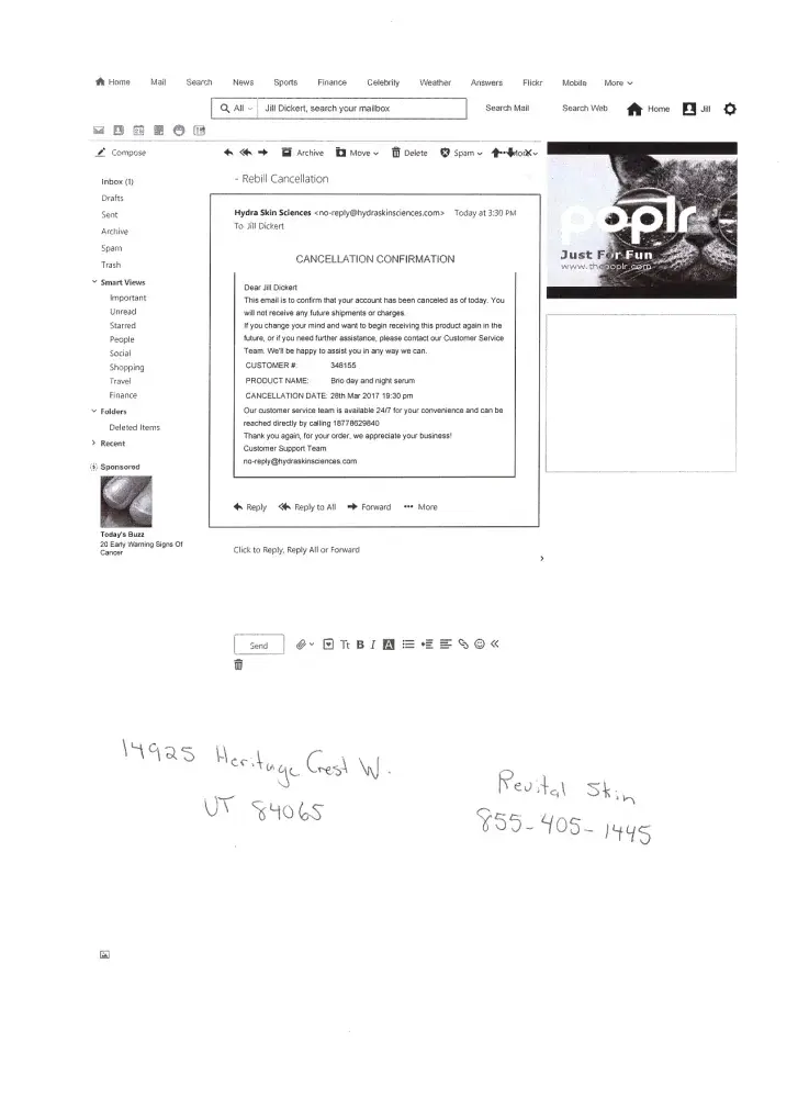 My complaint is consistent with all other complaints. Please contact the Attorney Generals Office and or Police in Bluffdale Utah and file your complaint so Hyda Skin Science can be shut down.