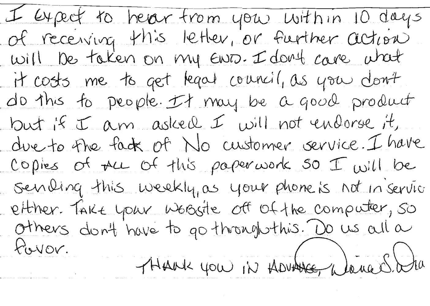 This is the letter I sent to Hydroderm on May 31st after noticing unauthorized credit charges. I sent back the 4 unused products I received which Hydroderm signed as received on June 14th. I have yet to hear from Hydroderm, I also sent this letter via private Facebook message: