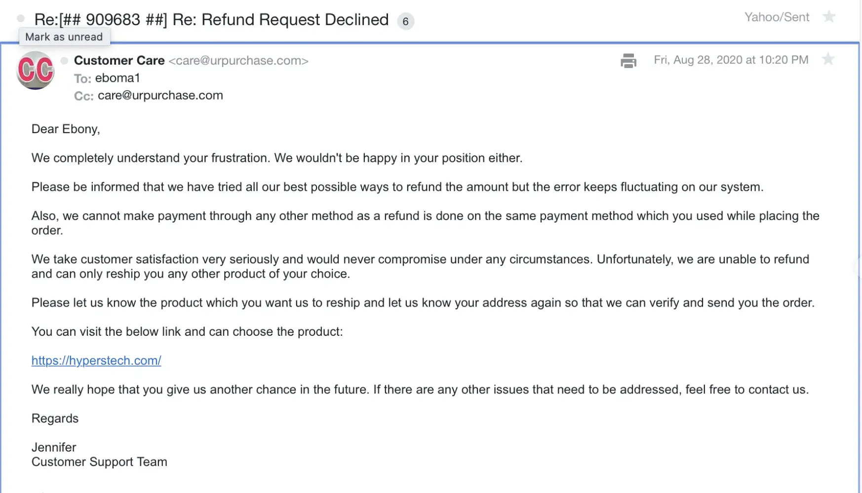 Https://hyperstech.com with reference re:[#791931#] and they confused me giving new order number