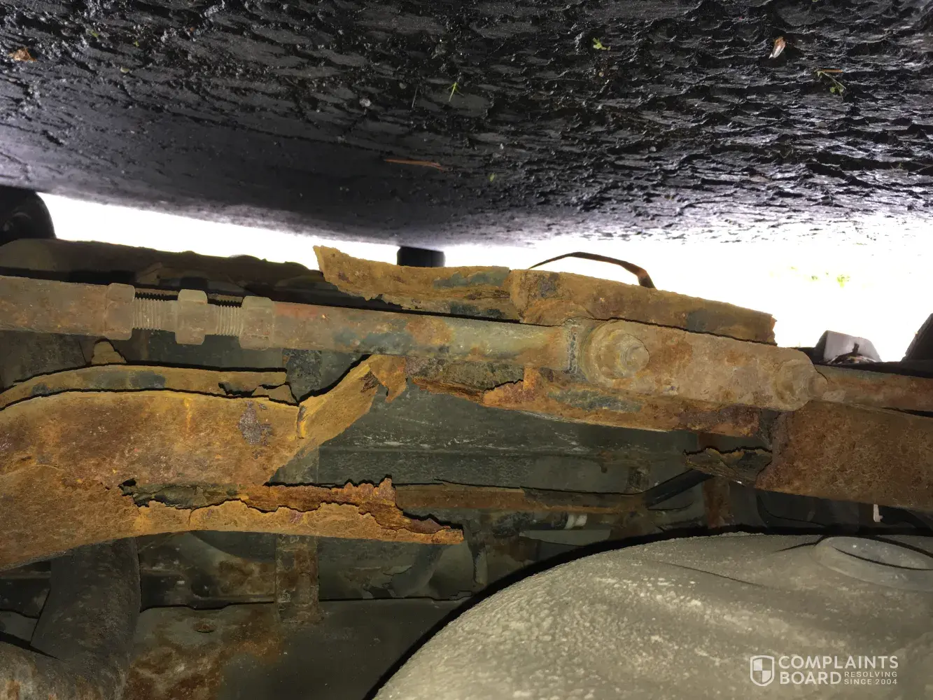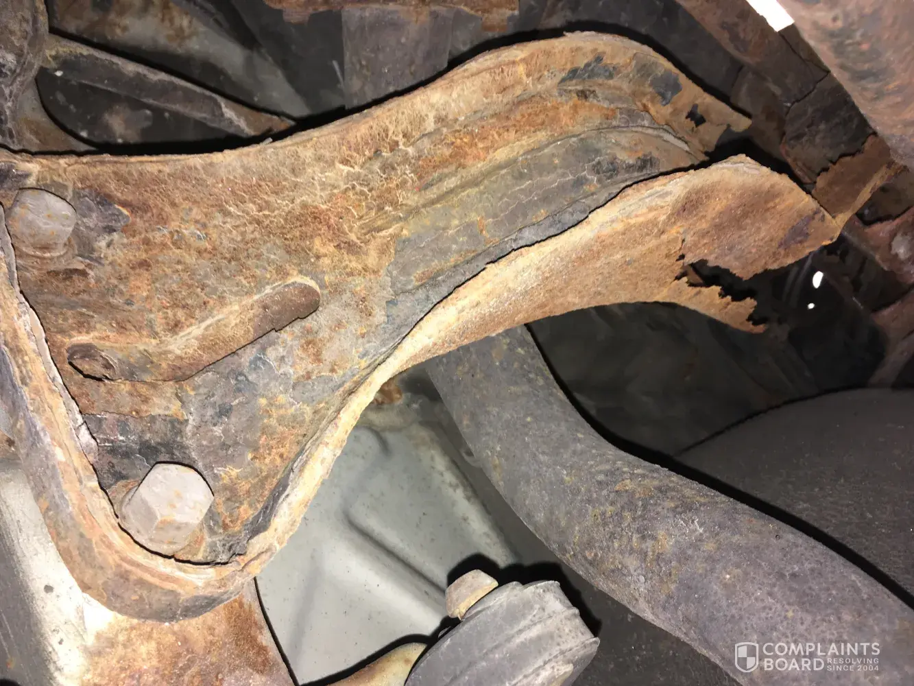 3/06/2019 The rear frame rusted and snapped in two places while rounding a curve. This nearly caused me to loose control . The car had to be towed and is currently out of commission and I am out of a car . Please see attached photos . I did not receive a recall or safety notification on this issue . This issue will be reported to the highway safety and whoever else needs to be notified to get this safety issue out to the consumers of hyundai automobiles.