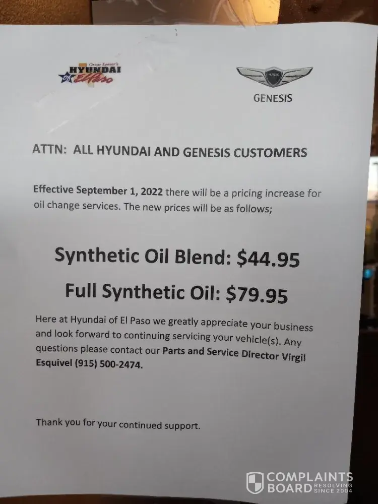 At this time I am not paying $80.00 for yet another oil change only to have a cheap oil added every time I return for the thousand mile check.. I will be losing time off from work having my oil check and topped off of a car that we just cannot trust any more..
