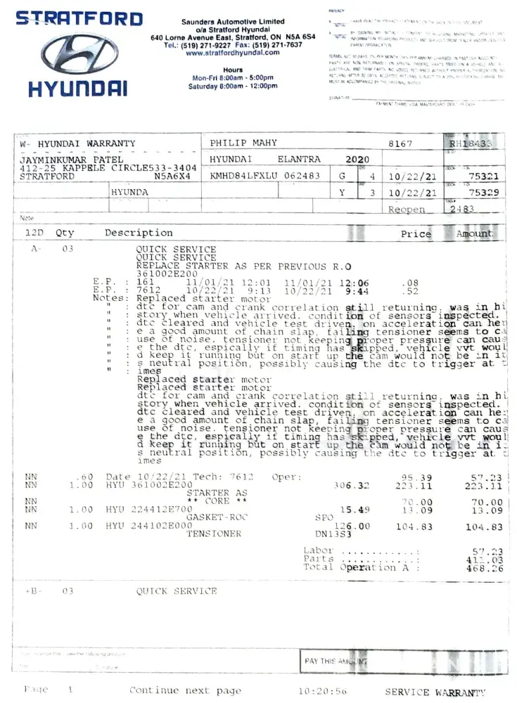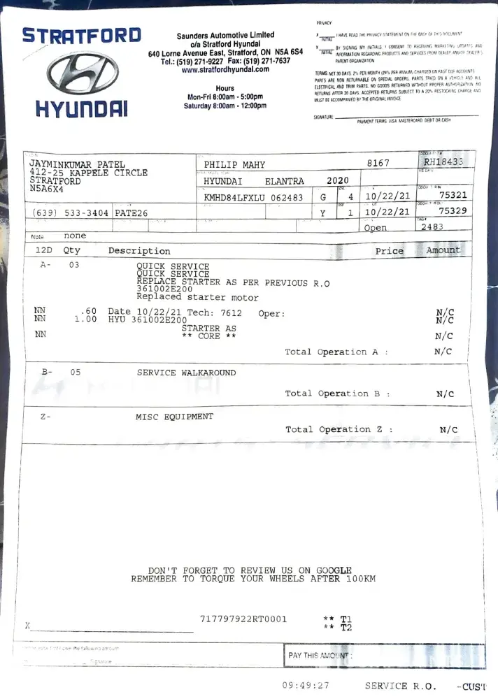 I (Jayminkumar Patel) own Hyundai Elantra 2020.I just had recent repair at Hyundai Showroom. I drove to Hyundai showroom multiple times over last few months due to recall letter I received from Hyundai.They mentioned they fixed issue but still I continue getting difficulty every single day.I did not pay lot of money to see this day.I regret on my decision that I bought such a garbage car from Garbage company with ridiculous helpless staff.If you people cant fix issue then reimburse me my money as per current market value so at least I can get rid off from you people or get me new car.Today (Nov 4/2021) I was driving to 401 Highway and my car all of sudden stopped working.I was lucky enough that there was no car behind me if its there what would happen to me? Who would be responsible for my accident?